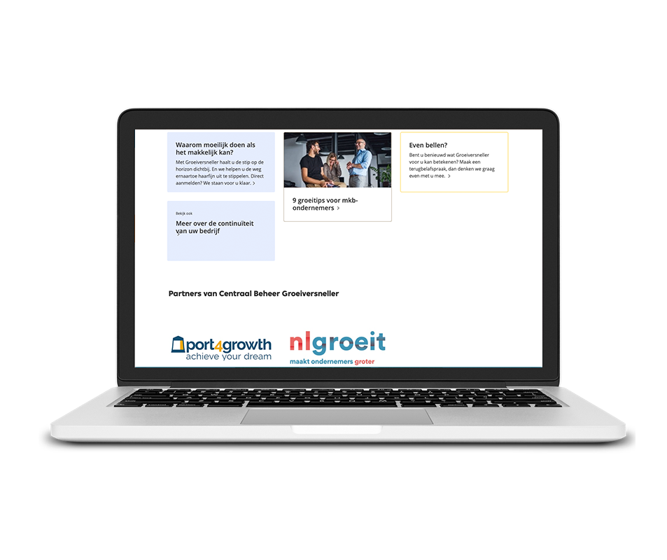 Ambitieuze ondernemers willen groeien. Vooruit en gáán. Whoppa! Met een sterk team nieuwe markten aanboren. Of met iets komen waar nog niemand aan dacht. Maar wat als je wel met je bedrijf wilt groeien, maar niet weet hoe of waarnaartoe? Speciaal voor die ondernemers ontwikkelde Centraal Beheer Groeiversneller. Een programma waarmee je binnen een half jaar een doorbraak voor je bedrijf realiseert. Wij maakten de Groeiversneller website en een rappe radiocommercial bij BNR om ondernemers in te laten stappen.