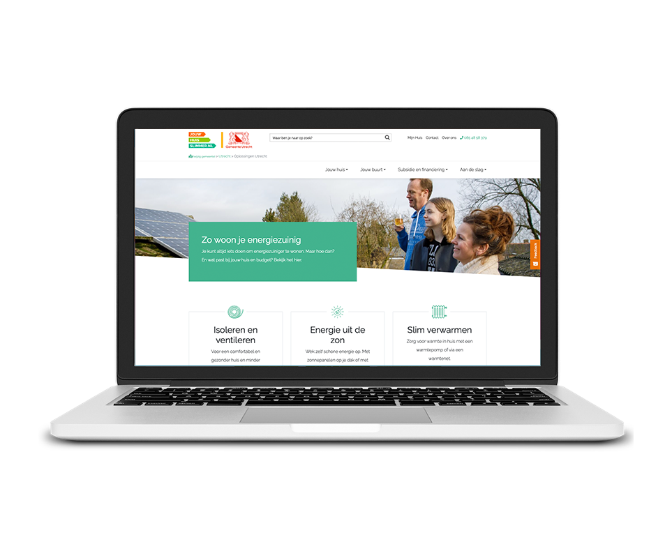Slim omgaan met energie is altijd een goed idee. Voor een lagere energierekening, de waarde van je huis en voor hoe je met de wereld omgaat. Toch stappen veel huiseigenaren de drempel nog niet over. Want waar begin je? Waar haal je betrouwbare informatie vandaan? Op een vernieuwd jouwhuisslimmer.nl maken 15 Utrechtse gemeenten inwoners wegwijs in duurzaam wonen. En willen ze iedereen vooral enthousiasmeren om gewoon aan de slag te gaan. We dachten bij Capeesh mee over een soepele sitestructuur om te vinden wat je zoekt en Ilse schreef de teksten. Ze weet nu alles van wonen zonder aardgas en er liggen al 15 zonnepanelen op haar dak.
